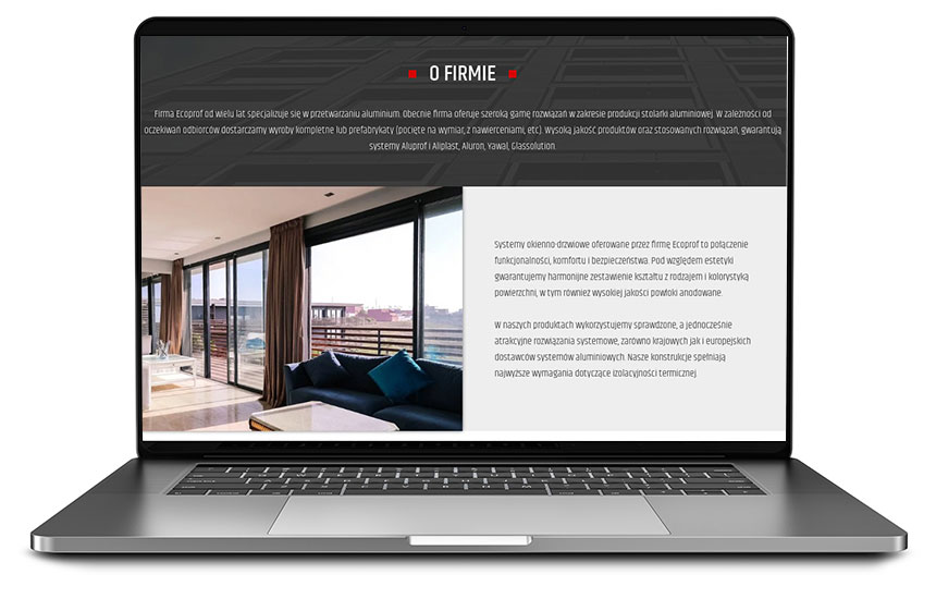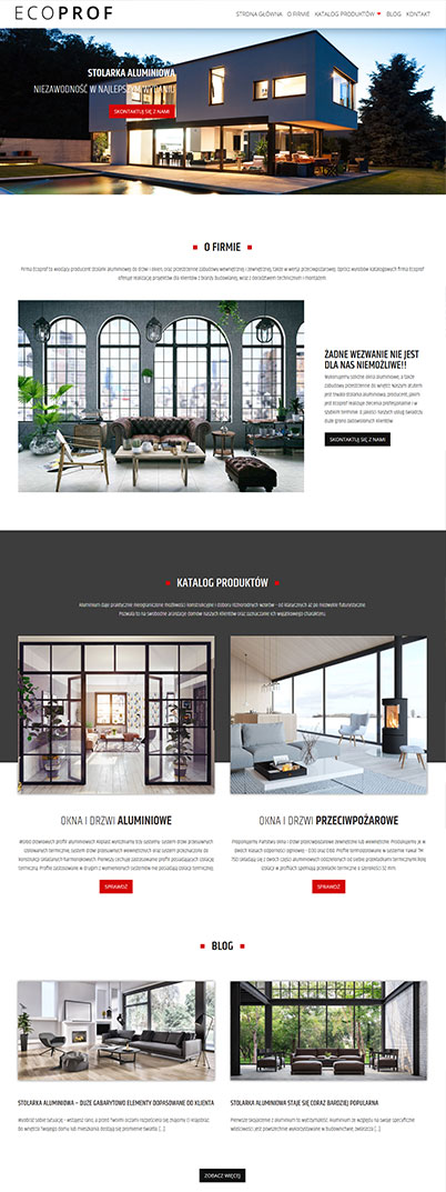 Stolarka aluminiowa w minimalistycznej formie nowoczesnej strony internetowej.