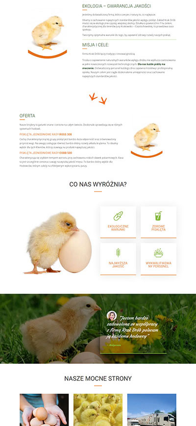 Ciekawe grafiki oraz delikatna, prosta kolorystyka stanowią o niebanalnym uroku tej strony internetowej. Od pierwszych chwil widać, że firma bardzo mocno stawia na ekologię. Zarówno barwy, jak i cała koncepcja tej strony internetowej to potwierdzają. Teksty w żaden sposób nie przytłaczają Odbiorcy, dostarczają jednak wiele konkretnych informacji. Strona za cel stawia sobie przedstawienie oferty firmy w sposób nowoczesny oraz ułatwienie kontaktu z firmą. Właśnie dlatego na każdej podstronie wyeksponowano dane kontaktowe. Stronę internetową wzbogaca dodatkowo nowoczesny formularz kontaktowy. Ułatwieniem dla Klientów jest również możliwość pobrania potrzebnych dokumentów na swój komputer bezpośrednio ze strony. Całość przyciąga wzrok i jest bardzo przyjemna w odbiorze. Niewątpliwym atutem jest responsywność tej strony internetowej. Treści automatycznie dostosowują się do rozdzielczości ekranu, na którym są wyświetlane.
